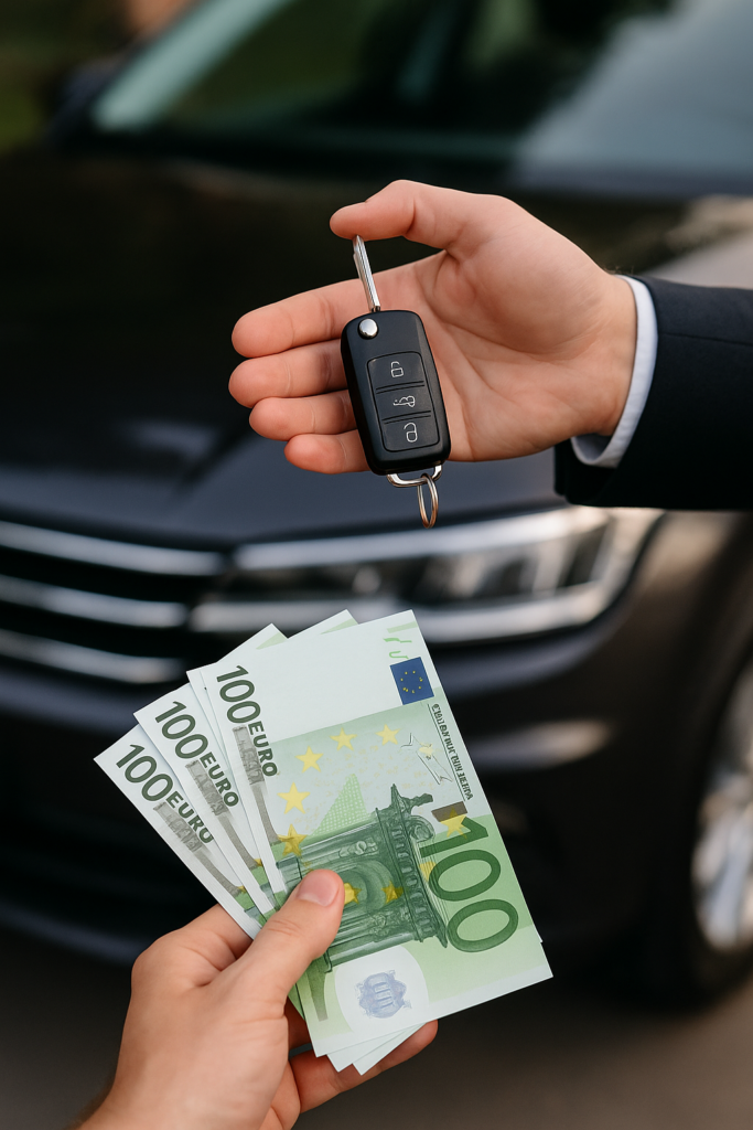 Um einen schnellen & reibungslosen Ablauf gewährleisten zu können kommt der Fahrer mit Kaufvertrag & dem vereinbarten Restwert für Ihr Fahrzeug in bar zu dem mit Ihnen abgesprochenen Ort.